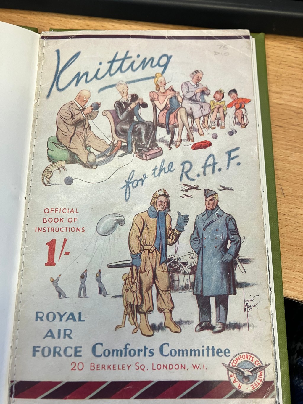 One of my dear colleagues particularly noticed this early on (shoutout to you Brian!) and knew that the RAF Museum had some items in its collection relating to knitting, so one lunchtime plopped a small book on my desk. It almost looked like a Ladybird book in terms of dimensions, but rather than telling me a story it had a wealth of information that has fascinated me since. Indeed, what he’d given me was a pattern book from the RAF Comforts Committee.