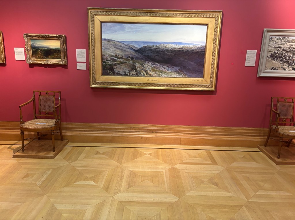 Situated within a landscape of Jerusalem by Edward Lear, I wanted to know why the chairs were not designated for visitors and what their history was. I’m so glad I did! These armchairs were gifted by Lady Henriques in memory of her son, Second Lieutenant Philip Brydges Henriques. He had matriculated from New College, Oxford, and was killed in action on 24 July 1915 aged 20.